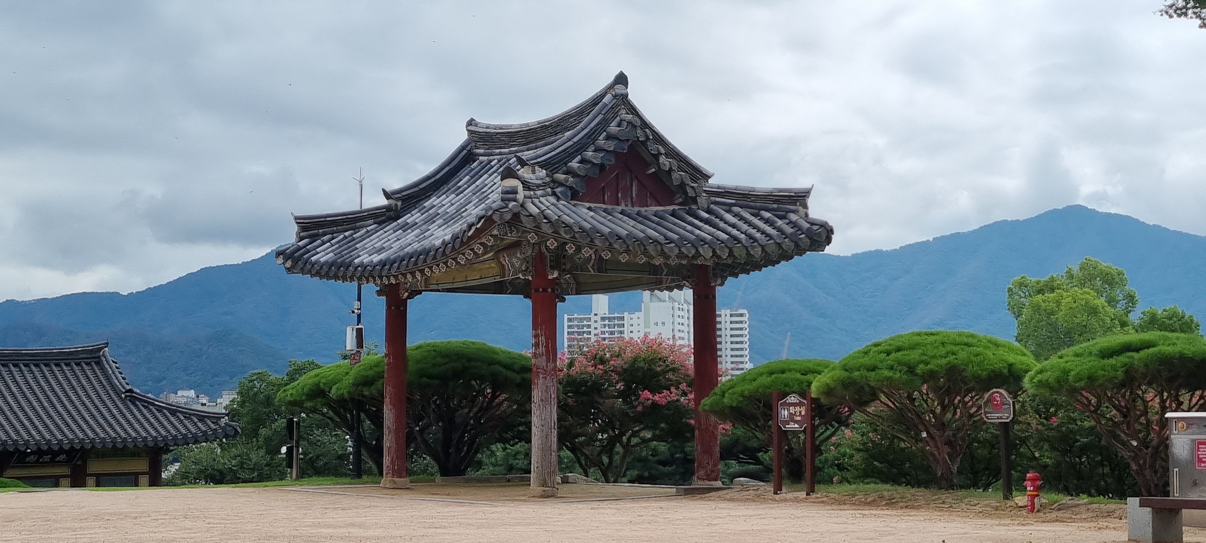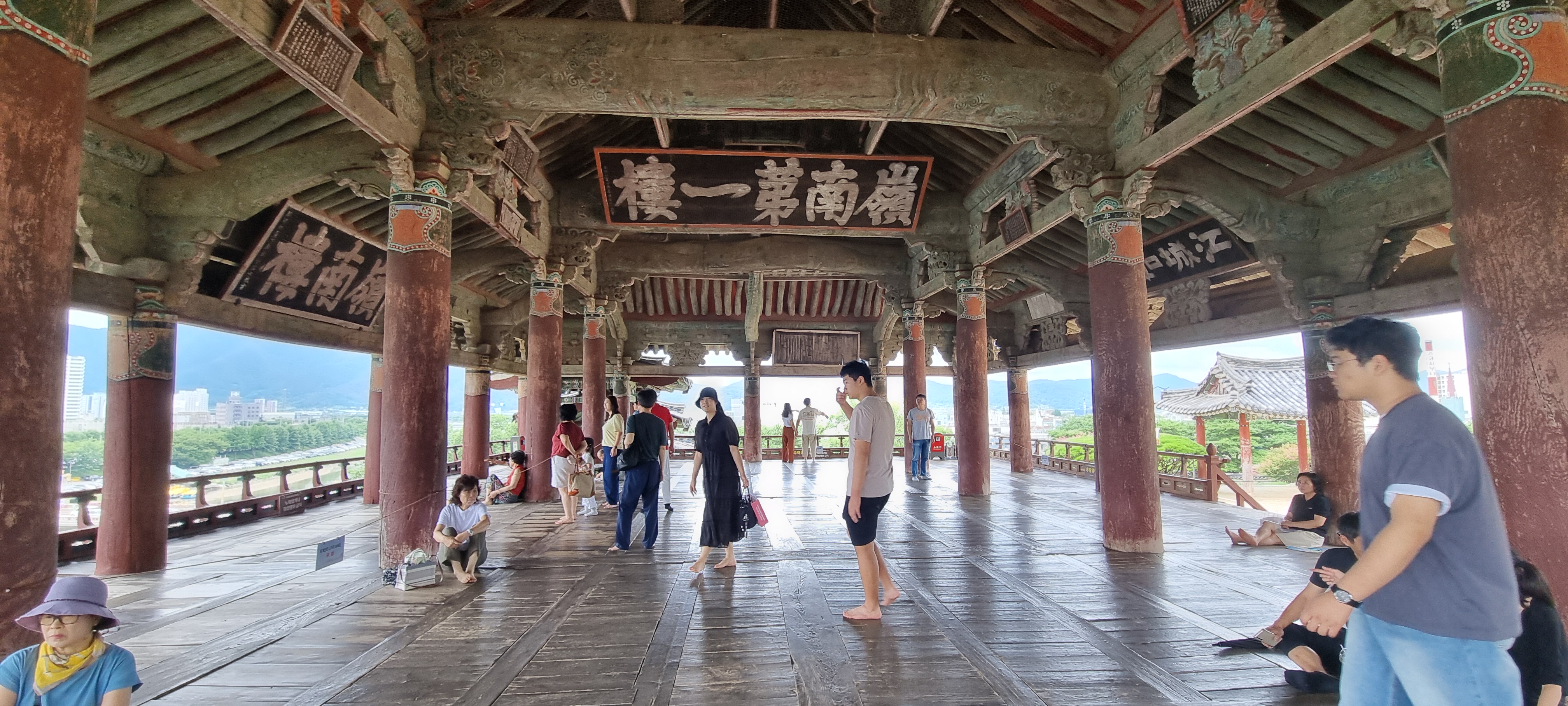 밀양강 위에 걸린 누각은 예전 그대로 우뚝 서 있었고, 2층 마루에 올라서니 강과 산, 시내가 한눈에 펼쳐져 감탄이 절로 나왔습니다.