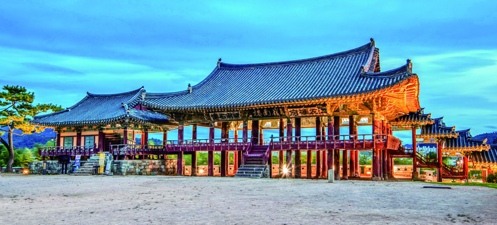 저녁 무렵에는 강 건너에서 바라본 영남루의 야경이 장관을 이룹니다.”