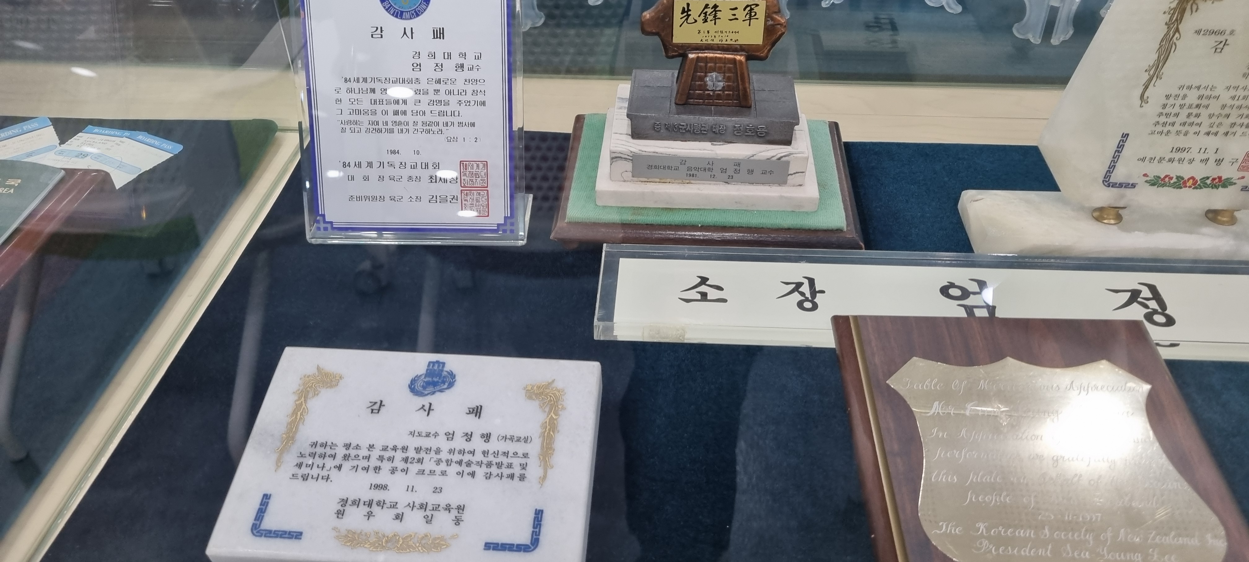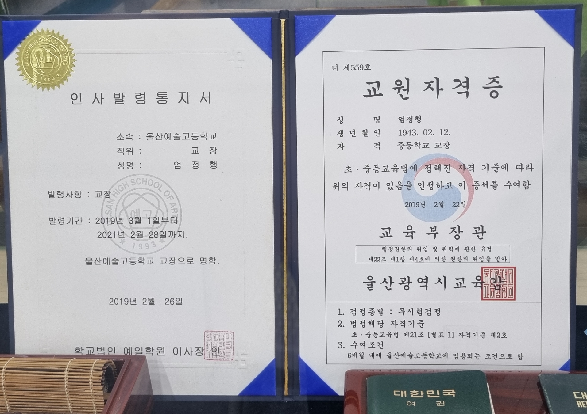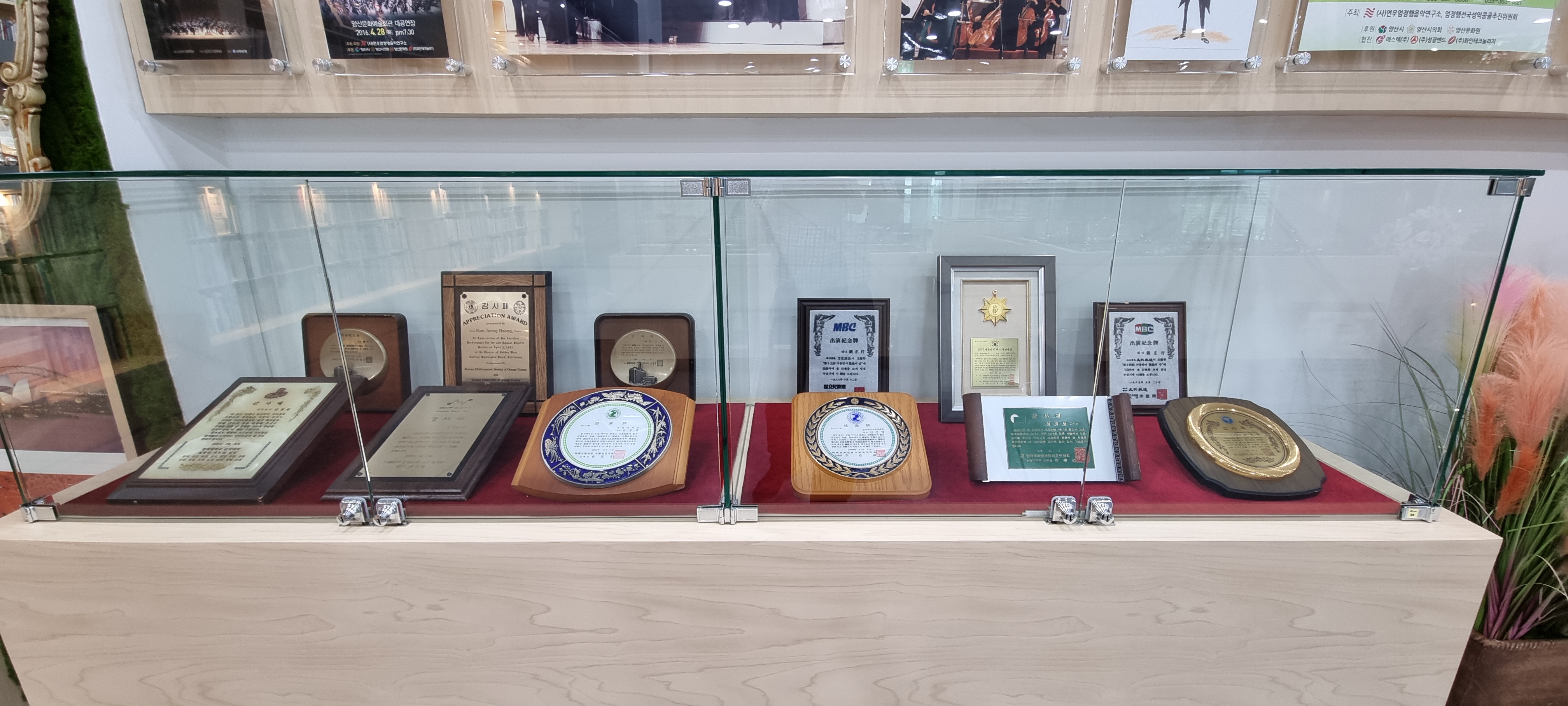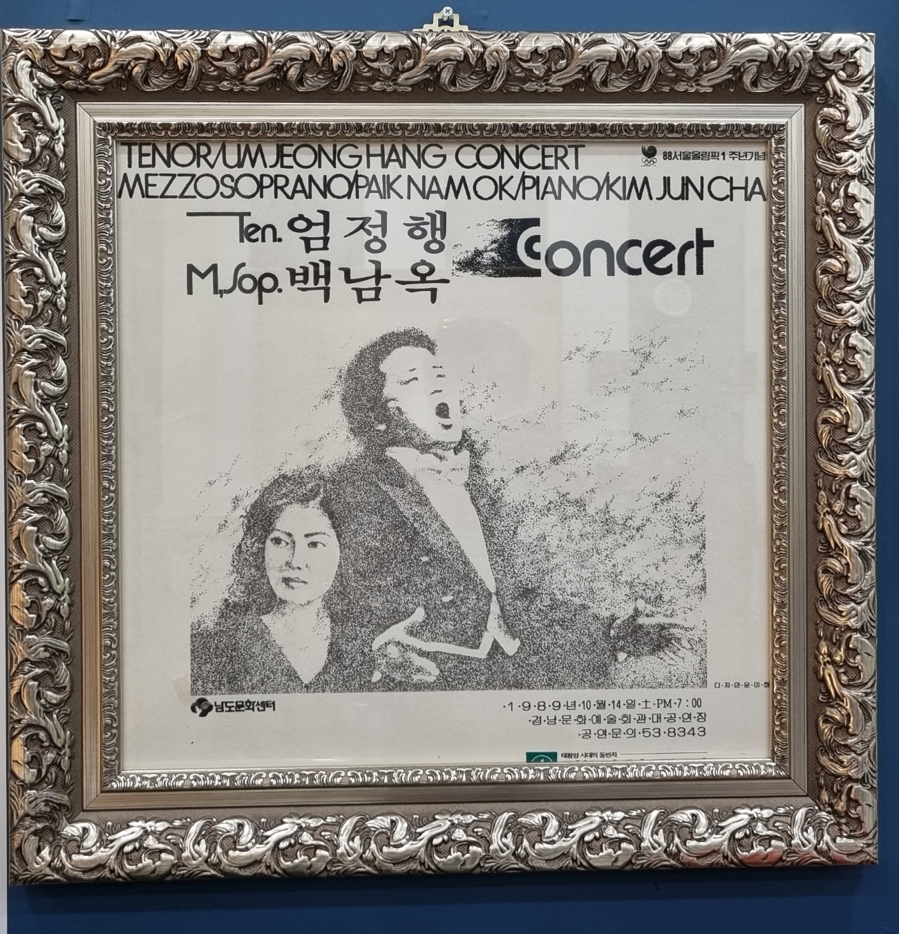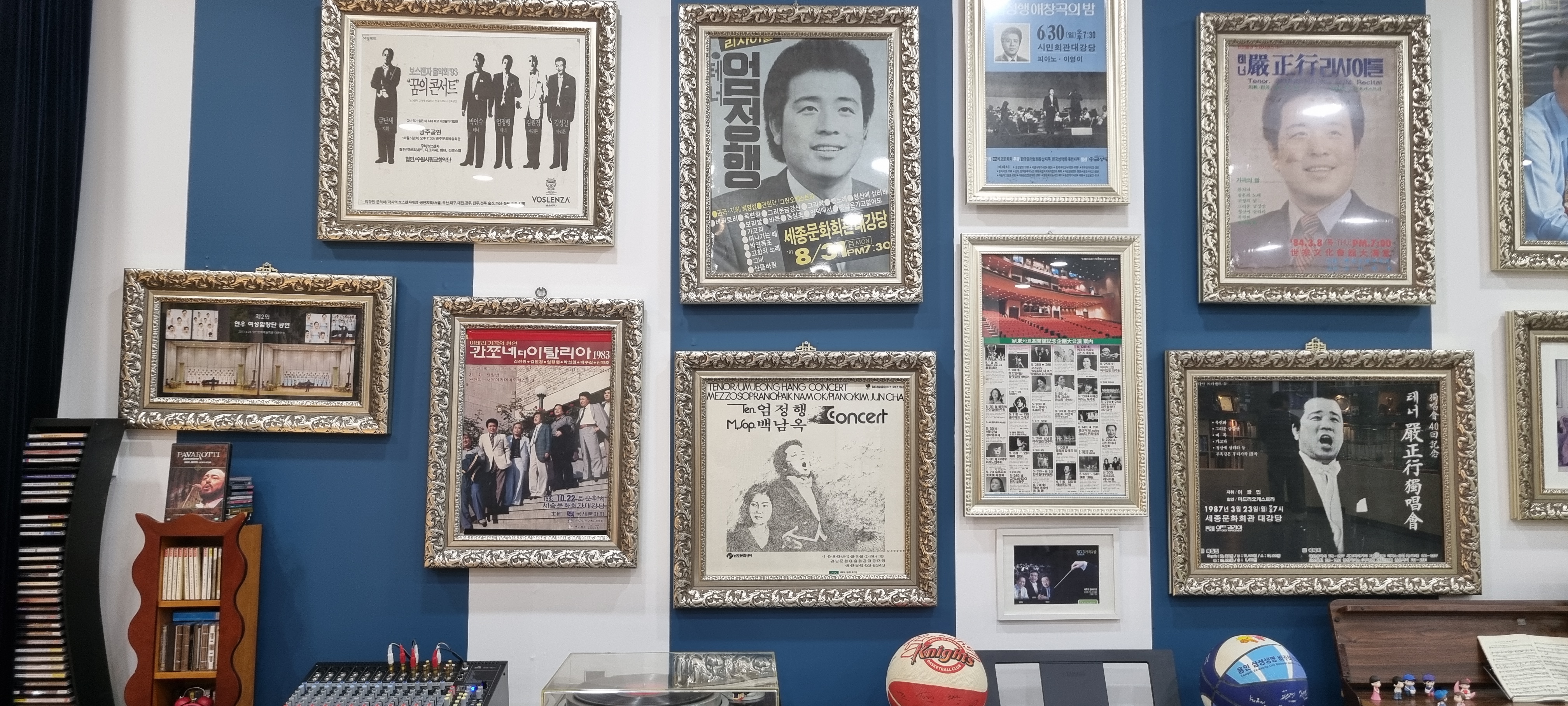아트홀 2층 전시관은 마치 작은 성악사의 기록관 같았습니다. 엄정행 선생님께서 평생 무대에서 불러온 주옥같은 아리아와 오페라 활동, 수많은 공연 포스터와 수상 트로피, 심지어 무대에서 착용하신 넥타이 핀까지 한 점 한 점이 살아 있는 역사처럼 전시되어 있었습니다. 특히 눈길을 끈 건, 엄정행 선생님이 남기신 세 권의 책이었는데, 이미 단종되어 쉽게 구할 수 없는 귀한 자료라 더 감회가 깊었습니다.그런데 울산예술고등학교장을 역임 하셨는데요 ^^^ 저는 큰 자랑으로 생각 하십니다.