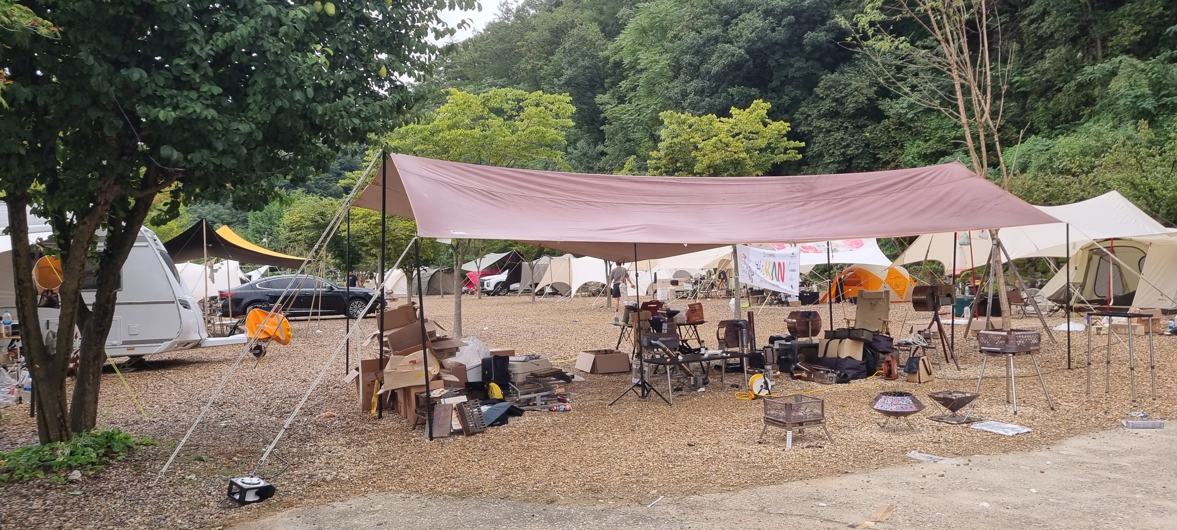 텐트와 캠핑 장비 사이로 웃음소리와 대화가 흘러나왔고, 자연 속에서 1박 2일을 보내는 그들의 모습에서 젊음의 활력이 느껴졌습니다. 맑은 공기와 산 아래의 풍경이 더해져, 캠핑이 단순한 휴식이 아니라 삶의 활력과 추억을 쌓는 소중한 시간임을 새삼 느낄 수 있었습니다.