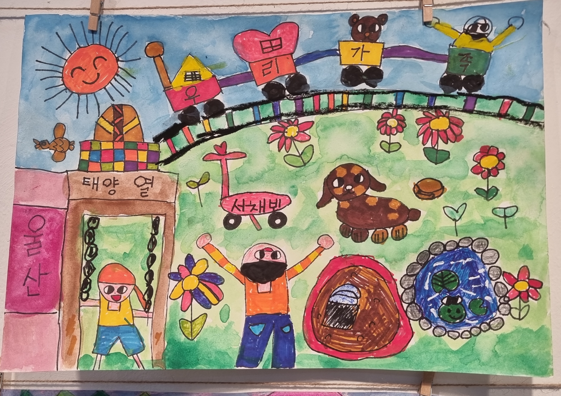 얼마 전 전시관에 들렀을 때, 전시된 그림이 손녀의 작품과 너무 닮아 있어 놀랐습니다. 마치 아이의 손끝에서 탄생한 것처럼 친근하고 따뜻했습니다. 그래서 몇 장 사진을 찍어와 손녀에게 보여주며, 네 그림도 멋진 작품이 될 수 있음을 알려주었습니다.