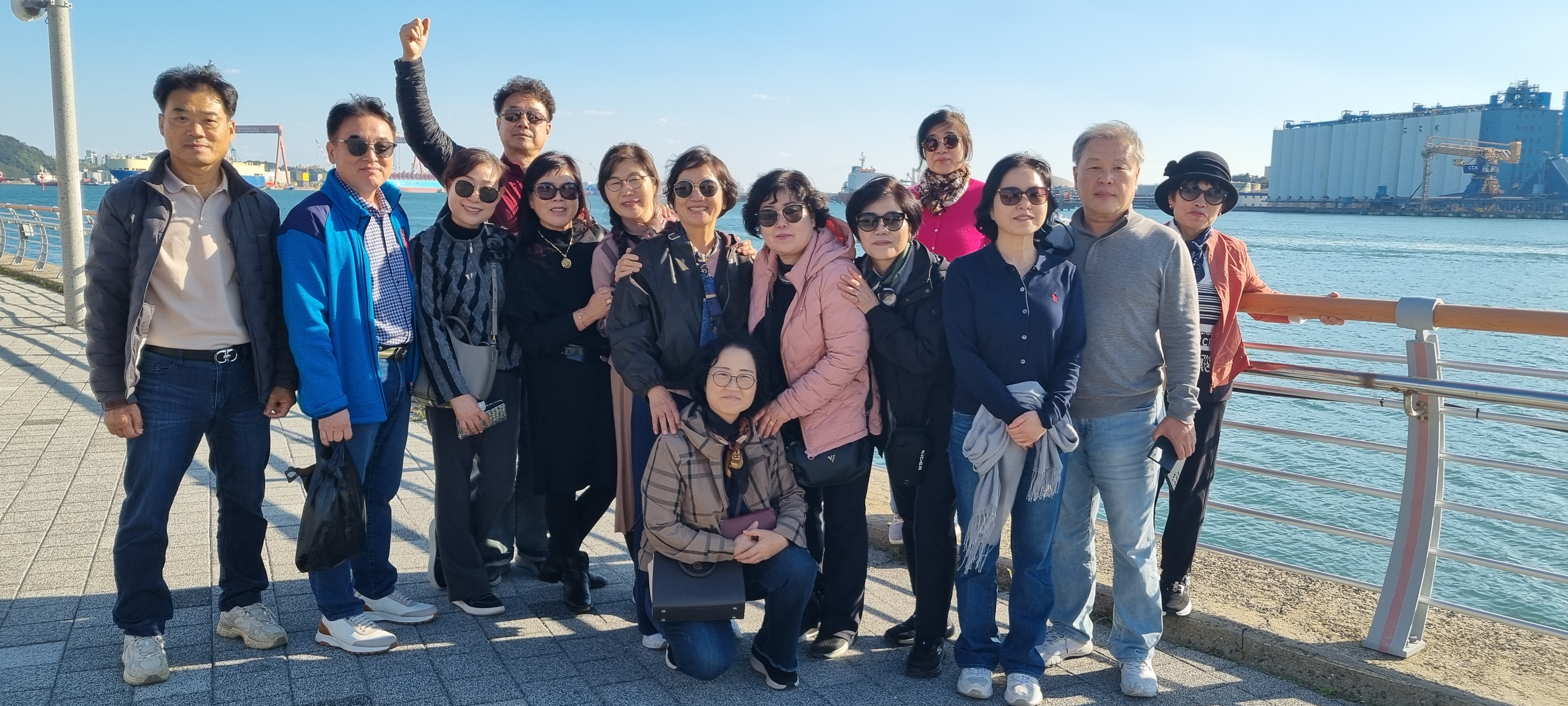 아산로(牙山路)를 따라 현대차 수출선적부두를 둘러 보며 이동한 태화강 국가정원에서는 울산큰애기와 대나무숲을 거닐며 가을빛이 머문 정원을 천천히 걸었습니다. 도시의 분주함도, 세월의 무게도 잠시 내려놓고 우리 모두가 한 폭의 그림 속을 걷는 듯했습니다. 울산은 내게 단순한 생활의 터전이 아니라, 제2의 고향이 되었습니다. 43년 동안 애정으로 살아온 이 도시가 이토록 반가운 친구들을 맞이하게 되어 가슴이 벅찼습니다.