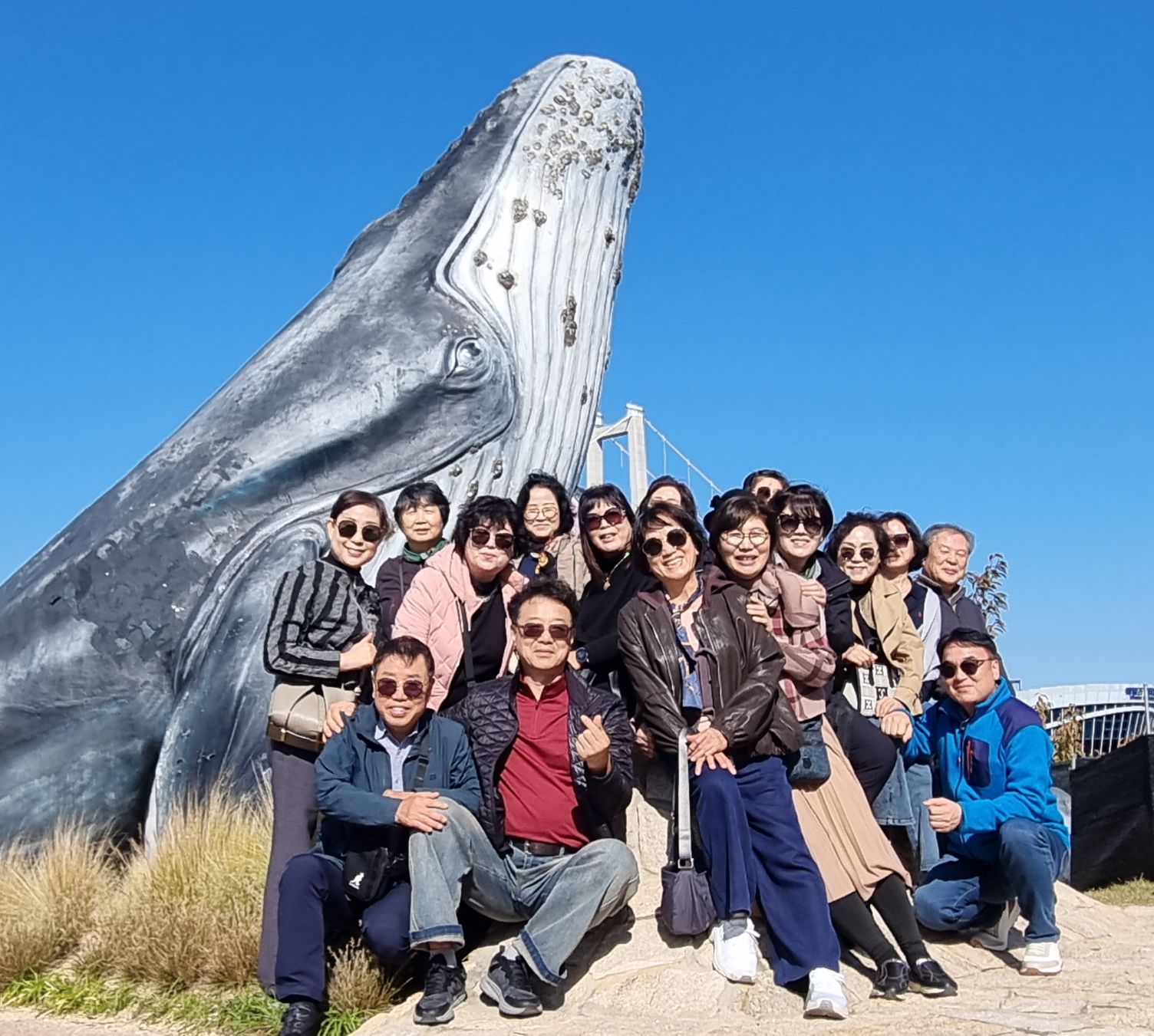 공업도시로 알려진 울산의 뿌리가 사람과 자연이 함께 어울리던 삶의 터전이었음을 새삼 느끼게 되었습니다. 점심 식사 후에는 고래박물관과 고래문화마을, 그리고 고래체험관을 둘러보았습니다. 모노레일을 타고 오르던 길, 해발 80m에서 바라본 울산대교는 장엄(莊嚴)했습니다. 배들이 쉼 없이 드나드는 항구의 풍경, 그리고 그 위로 햇살이 반짝이던 순간 그곳에서 우리는 모두 어린아이처럼 감탄했습니다.