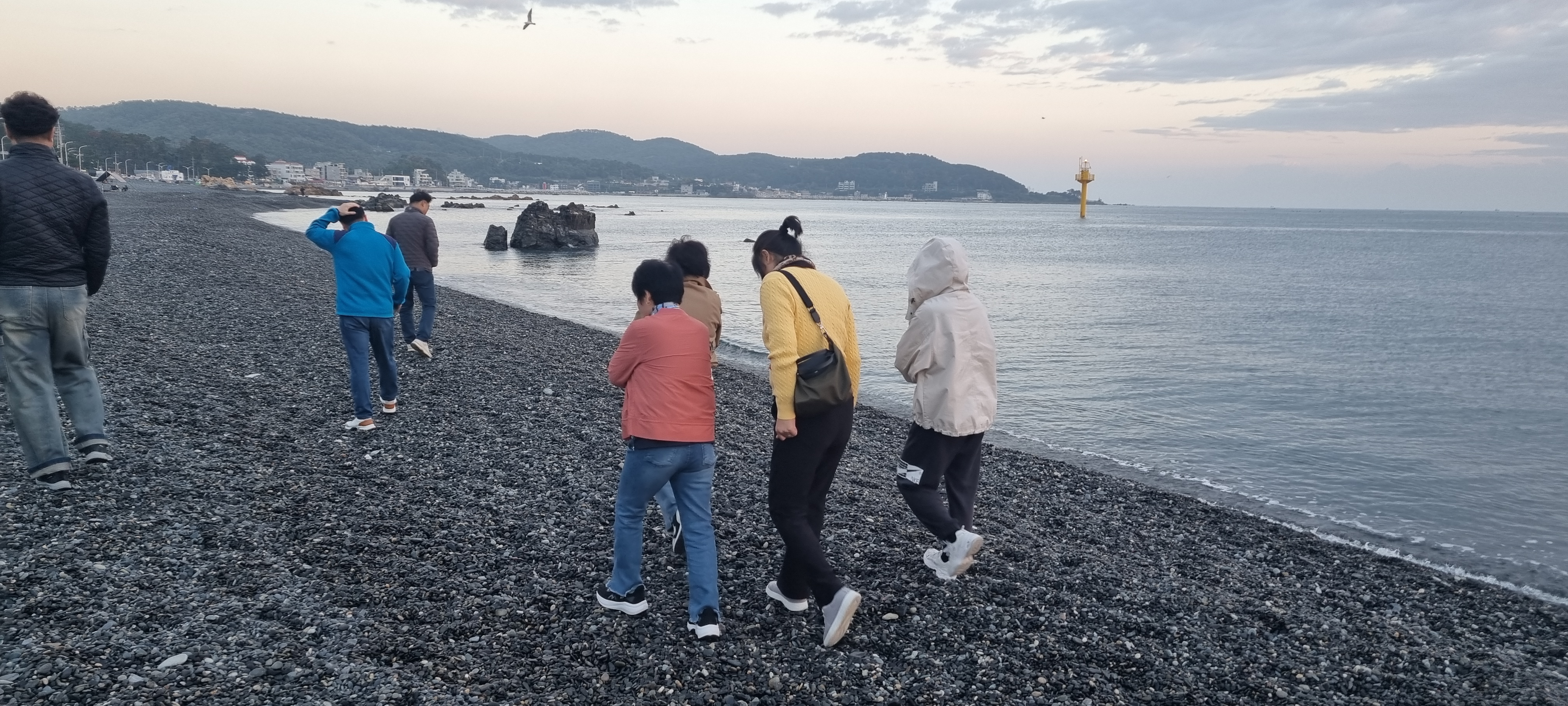 전망대에 오르니, 울산의 심장이 한눈에 들어왔습니다. 태화강이 유유히 흐르고, 현대자동차와 현대중공업의 위용(偉容)이 어깨를 나란히 했습니다. “이 도시가 이렇게 아름다웠나…” 누군가의 중얼거림에 모두가 고개를 끄덕였습니다. 울기등대는 여러 사정으로 발길을 돌렸지만,주전 몽돌공원의 바다는 그 아쉬움을 잔잔히 위로해주었습니다.