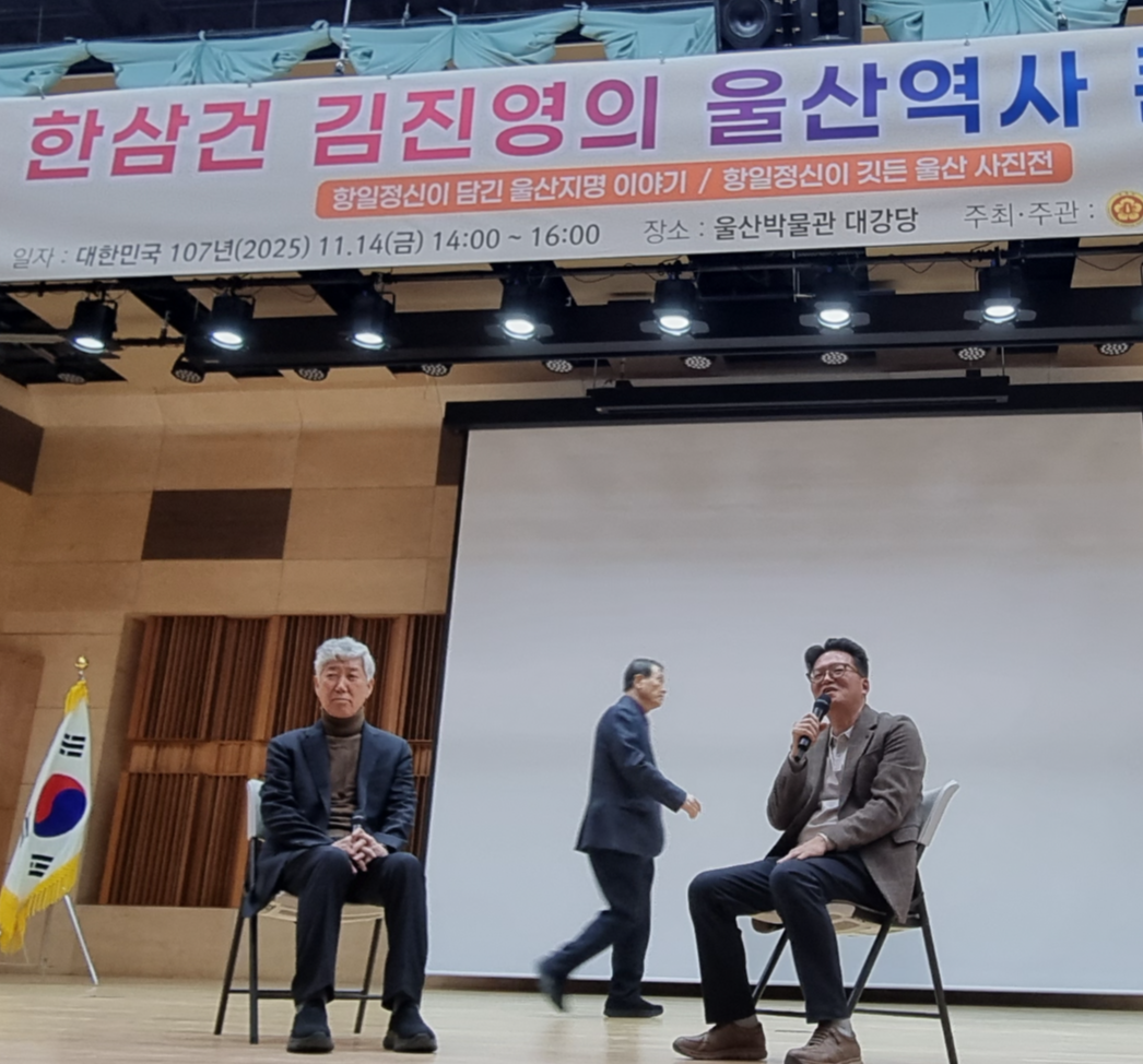 단풍이 깊게 물든 오후, 울산박물관 대강당엔 80년 전 광복의 숨결이 잔잔히 일렁였습니다. 광복회 울산시지부(남진석지부장)가 마련한 ‘한삼건 김진영 울산 역사콘서트’ 그 자리에 앉아 있는 순간 만큼은 시간이 천천히, 그러나 묵직하게 흘러갔습니다. 제가 태어난 곳은 문경이지만 나의 삶의 약 40여년 넘게 울산에서 살아온 시민으로서, 이 도시의 뿌리를 알고 싶다는 마음, 선열들의 숨결을 있지 않고 싶다는 마음이 오늘 만큼 뜨거웠던 적이 있었던가요? 그래서 저는 맨 앞줄 뒤편에 조용히 자리를 잡고 이날의 이야기에 귀를 기울였습니다.